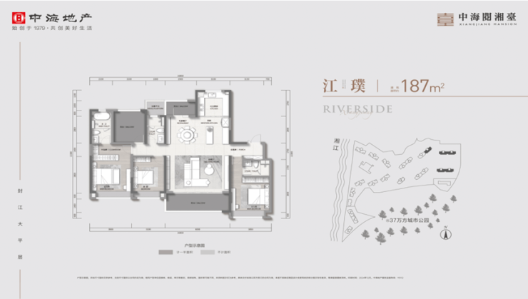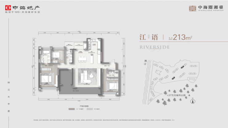 每个户型无一例外,都有超长景观面,直面湘江或37万㎡城市公园、「双主套」设计,整体空间尺度非常大。