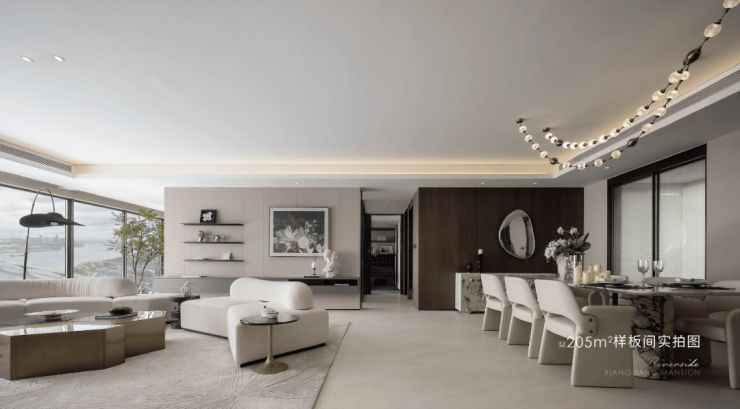 中海阅湘台深知现代居住者对于理想家居的追求,因此在户型设计上下足功夫。其在售产品为建面约183-335㎡的封江大平层和建面约253-263㎡的江幕洋房,均以大尺度无界方厅呈现纯粹精奢的空间质感,融入顶奢酒店式的艺术美学,让业主一踏入家门,就能获得更高级的「人生配得感」,仿佛置身于奢华的艺术空间之中。