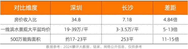 长沙作为中部新一线城市,房价收入比常年保持在7左右,堪称“价值洼地”。当深圳核心区新房大平层单价普遍超10万/㎡时,长沙同级别的优质江景大平层仅2-3万/㎡,不到深圳的1/3。