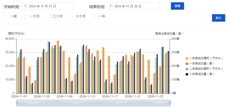 11月新房住宅购房合同网签累计7120套;二手住宅累计成交6585套。