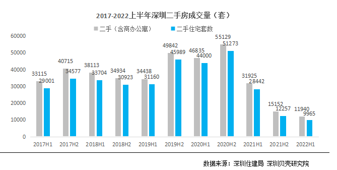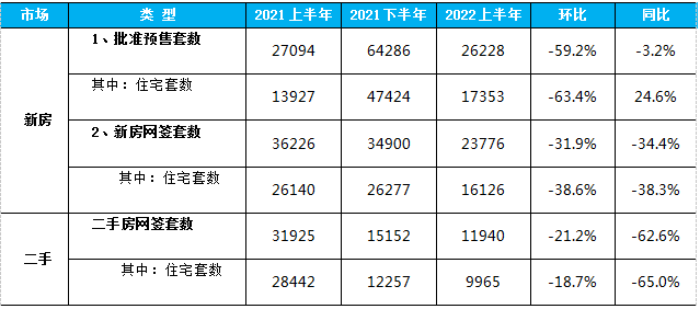 二手住宅方面,2022上半年全市共成交11940套,同比下降62.6%,环比下降21.2%,其中二手住宅9965套,同比下降65%,环比下降18.7%。