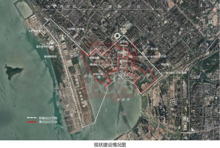 统筹设计涵盖宝安滨海片区和大铲湾片区,总面积约719公顷,重点设计为中心区东、西两个组团,合计约201公顷。