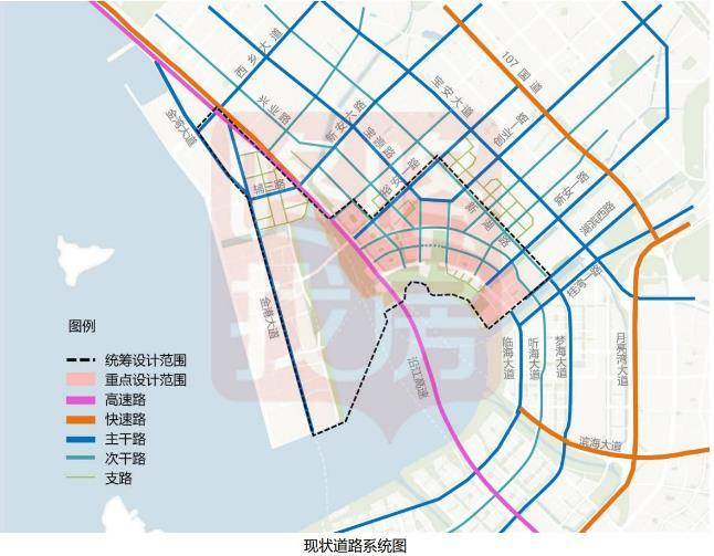 片区内已基本建成滨海廊桥,“滨海绿厅”湾区书城项目、“互联网+”未来科技城已启动建设,中央绿轴景观设计方案现已通过专家评审,本次设计咨询应充分落实上述项目。