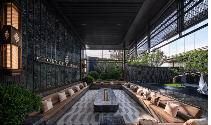 历经百余稿设计,将圣爱德华皇冠流线灵感还原于星级酒店式门庭。全冠移植名贵双罗汉松,屹立门庭,盛迎塔尖归家。以自然与艺术相融的设计手法,归家宛如赴约顶奢品牌秀场。