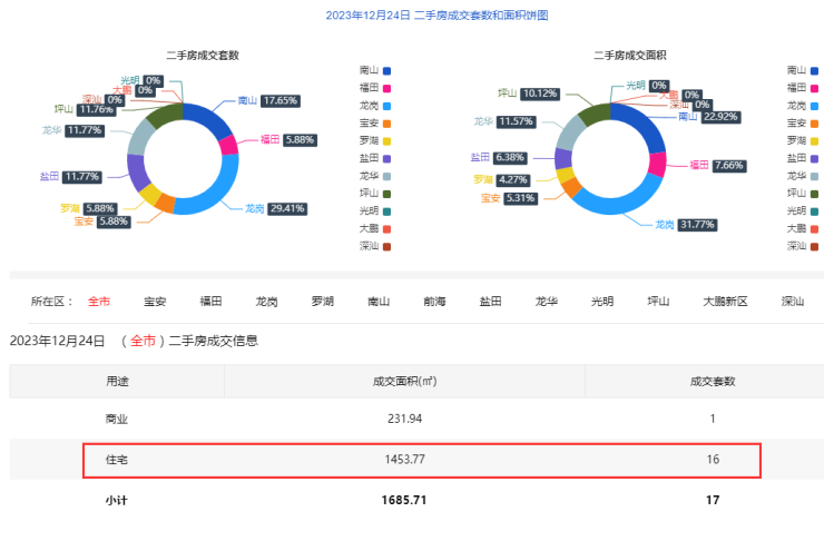 12月24日二手房住宅网签16套。宝安1套;福田1套;龙岗5套;罗湖1套;南山2套;盐田2套;龙华2套;光明0套;坪山2套;大鹏0套。