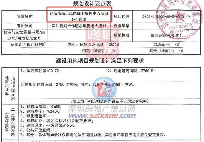 根据规划设计要点表显示,项目将建设红海湾海上风电陆上集控中心。
