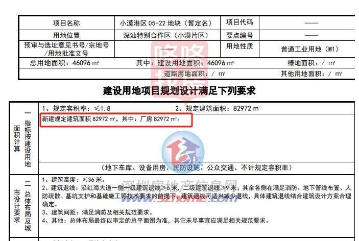 根据规划设计要点表显示,新建规定建筑面积82972平方米,其中厂房82972平方米。