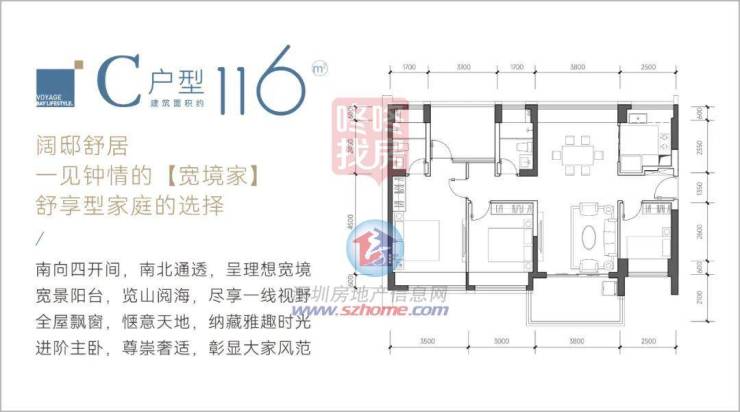 建面约116㎡四房两卫,170套;