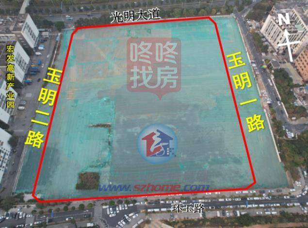 地块位于宏发高新产业园旁,光明大道与玉明一路、二路交汇处。