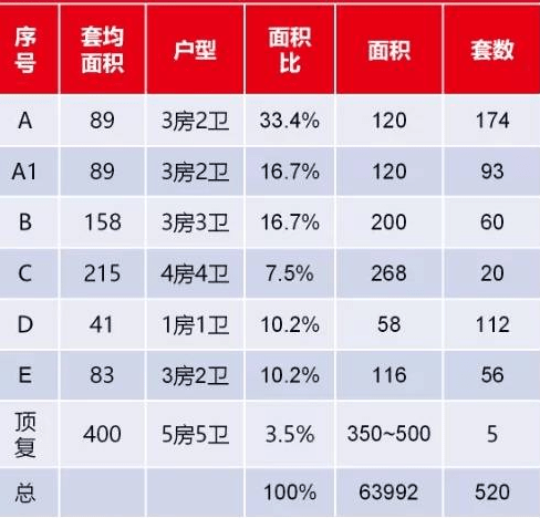 据爆料,总共520套,平层58-200平,复式350-500平,以下为户型情况: