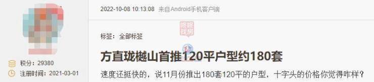 10月8日,【家在】网友@传奇美丽爆料了方直珑樾山首推户型,120平户型约180套。