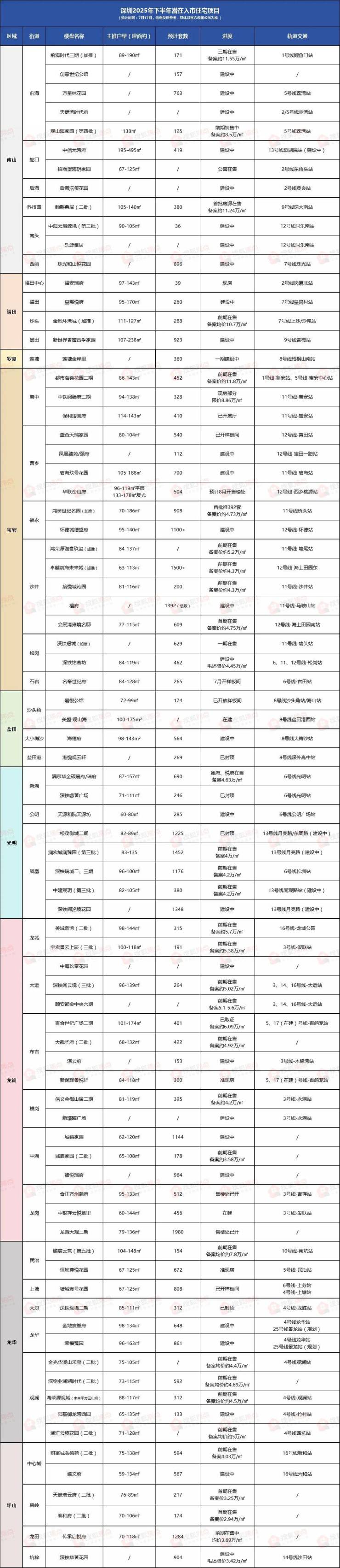 从各区域来看龙岗、宝安仍是供应“王者”,各有17个新盘。其中,宝安待推项目主要分布在置业热门的沙井、宝中、西乡板块;龙岗多在地铁口周边,大运、龙城、布吉三大东部核心板块都有供应。