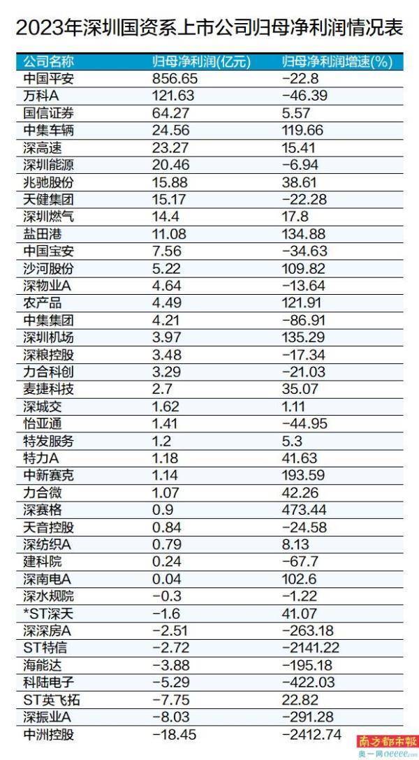 紧随其后的公司,分别是国信证券、中集车辆、深高速、深圳能源、兆驰股份、天健集团、深圳燃气和盐田港。上述公司的归母净利润,均超过了10亿元。