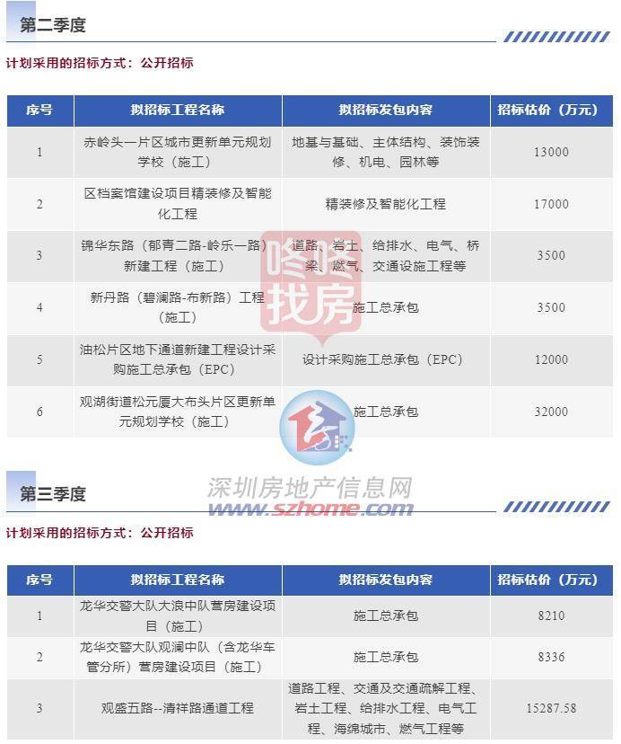 近日,龙华区建筑工务署公布了2025年的招标计划。