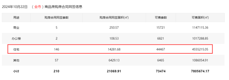 2024年10月22日新房住宅认购网签448套。宝安71套;福田4套;龙岗98套;罗湖2套;南山61套;盐田1套;龙华134套;坪山10套;光明64套;大鹏0套;深汕3套。