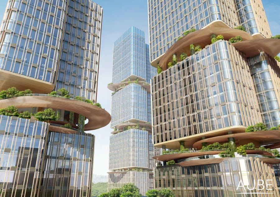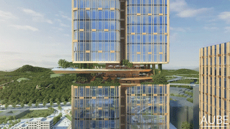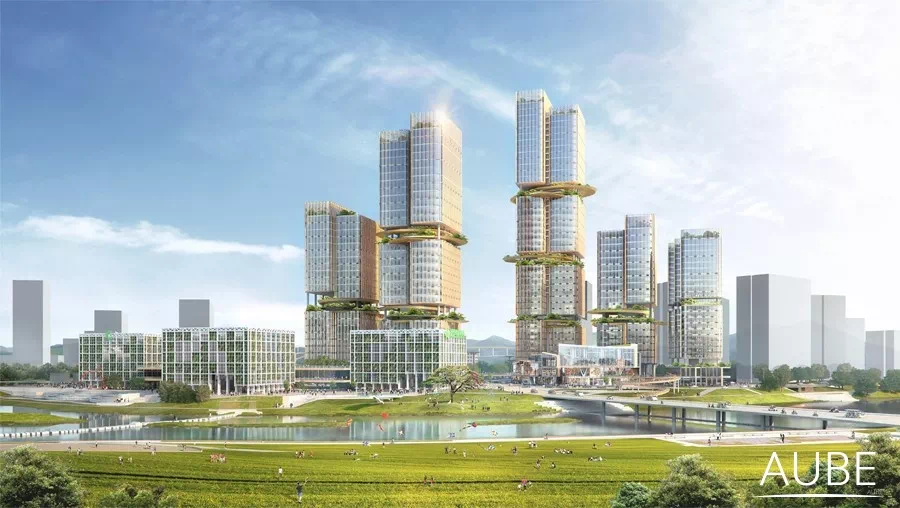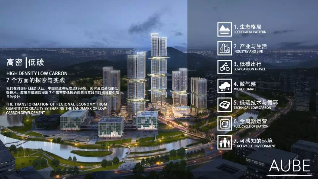 深圳国际低碳城总建筑面积达380,000平方米,其中包括研发办公、厂房、办公、星级酒店、居住建筑,以及丰富多彩的商业和文化设施。先天的地理优势促成了该设计的概念,设计关注于寻求人、自然和生产办公之间的平衡。作为国际低碳城区优先开发的项目,AUBE欧博团队发挥建筑、景观、规划集成一体化的优势,从多角度、多领域、多层次进行“合作设计”,为华侨城的低碳实践打造了一个集产、学、研、商、旅于一体的综合服务区,相信在未来十年将会给片区带来更多的活力。