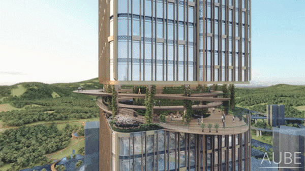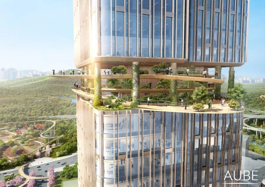 塔楼设计将绿化架空休闲与避难层相结合,营造出不同的生态休闲、主题体验空间。