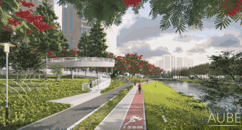 以自然生态为基底,借势于场地高差、水系打造示范性大海绵体系,将人、动植物、自然环境融合,打造可观、可游、可玩的城市低碳生活滨水带。