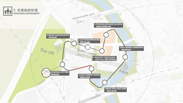 历史围屋作为整条线路当中最为重要的感知节点,在展现可以触碰的绿色低碳理念之外, 同样拥有强调文化体验,诉说历史,展示未来的重要功能。