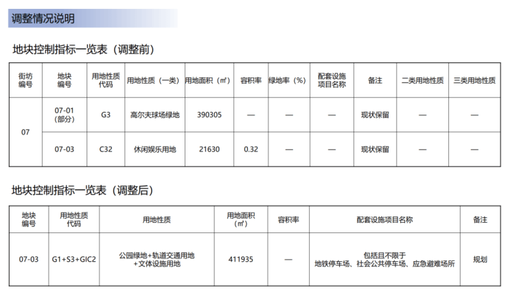 据2024年5月,[车公庙地区]法定图则07-01、07-03地块局部调整公开展示信息显示,用途由原高尔夫球场绿地和休闲娱乐用地,变更为公园绿地+轨道交通用地+交通设施用地,面积约41万平方米,此规划与体育公园规划范围一致。