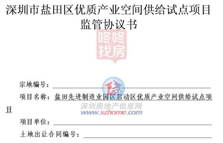 根据监管协议书显示,该地将用于盐田先进制造业园区启动区优质产业空间供给试点项目。