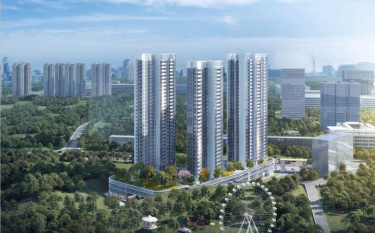 其中,住宅约4.79万㎡,整体包含3栋住宅楼,呈L形状分布,地上最大层数为31-35层。以2梯4户及3梯5/6户梯户配置为主,规划车位数约500辆。