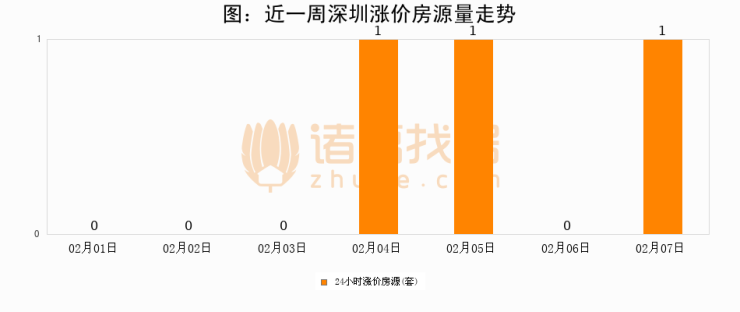 根据诸葛找房数据显示,深圳24小时涨价房源量为1套,较02月06日增加1套,环比上涨0%。与此同时,涨价房源占比小幅扩大,业主信心有所提升。