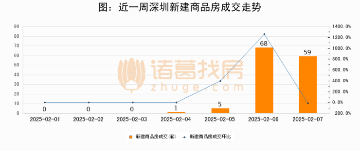 根据深圳市住房和城乡建设局数据显示,2025年02月07日深圳新建商品房成交59套,较昨日减少9套,环比下降13.2%