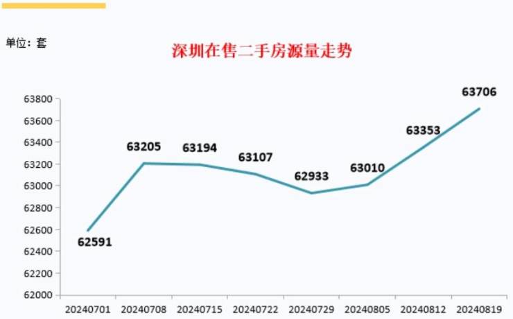 据深圳市房地产中介协会监测,深圳二手房交易量呈现波动下滑,上周二手房在售量达到6.4万套,再创新高。二手房在售量持续增加,约6.4万套根据公开在售二手房源量数据统计,2024年8月19日,全市共有63,706…