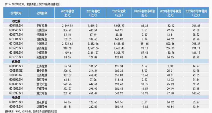 Mysteel统计数据显示,全国36家上市煤企发布的2023年前三季度业绩报告,合计营业收入约12000亿元,合计净利润约1630亿元。其中,有32家企业实现盈利,中国神华以净利润482.69亿元排名第一。另据国信证券,近年来煤炭板块上市公司业绩保持稳健增长。
