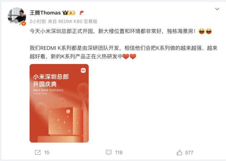 小米集团前总裁王翔曾表示,小米一开始创立的时候,立下的目标就是要服务全球消费者,深圳具有非常大区位优势,也汇聚了全球各种不同的人才,所以选择深圳作为小米国际总部,是一个非常匹配的选择。