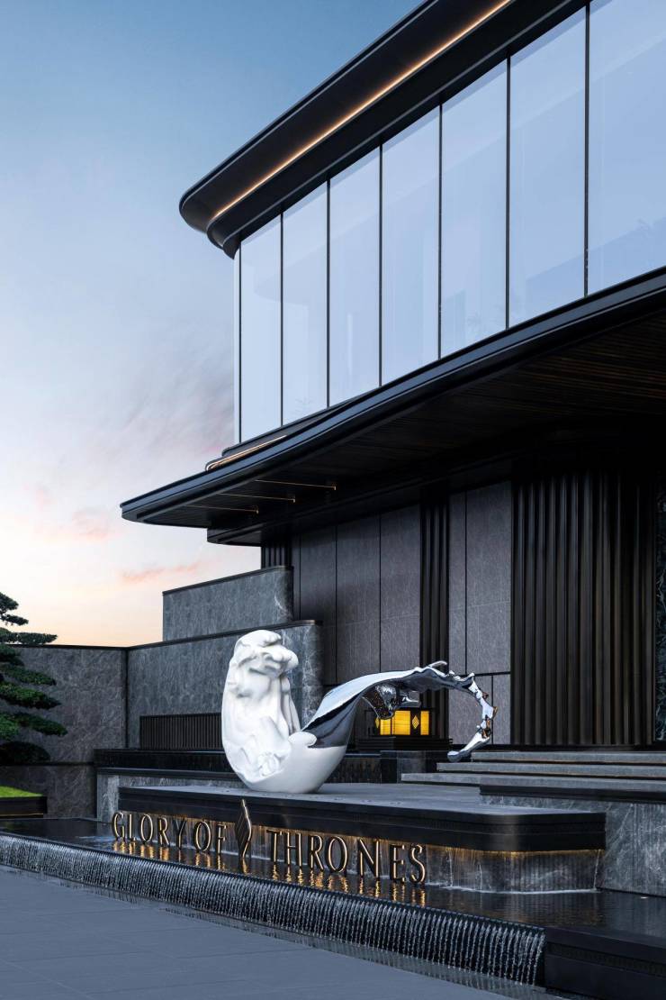 建筑外立面由LWK + PARTNERS深圳公司董事赵新宇量身打造钻感幕墙外立面,小区内部景观设计更是复刻豪尔道夫酒店精奢景观,设计一廊五境、五重叠水景观,打造高定艺术繁星泳池,将奢华美学诠释的淋漓尽致。社区内还有两大艺术装置,一处位于社区入户大门的“光明之湖”,它出自雕塑大师杨恒清之手,另一处位于园林浮光水院中的“心湖之月”。这两座装置都是取材天然的汉白玉石,纯手工打磨,具有收藏价值。