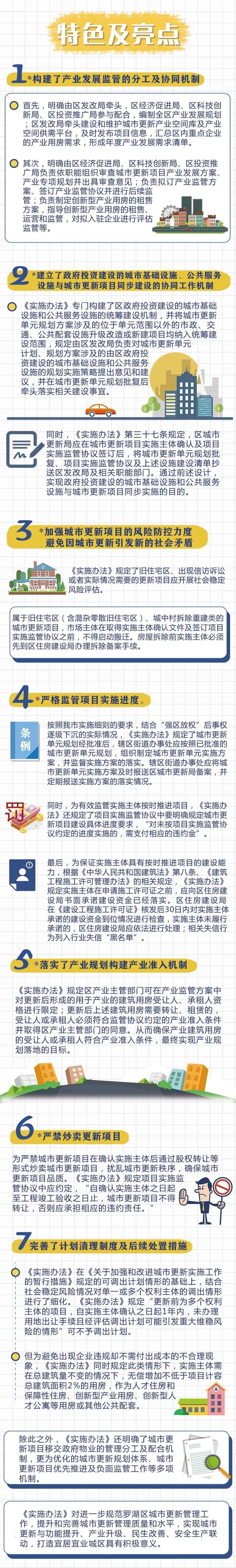 本次修订,在总体结构上增加了第二章“更新统筹”、第十章“项目清理”等相关章节,增补、完善或修订了领导小组及各成员单位的具体职责、工作审批程序、申请材料等制度与内容,并对城中村改造、公共空间及公共艺术作品建设管理等一系列具体问题进行了规范。办法从原来的八章四十七条增加至十一章六十八条。