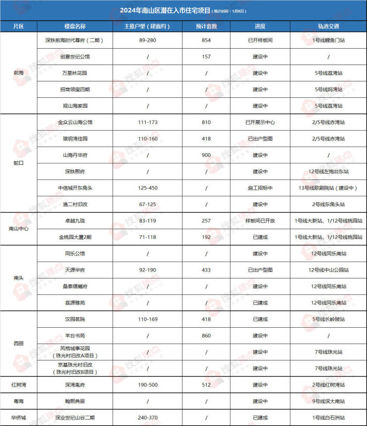 深圳最“贵”新房来了!2024年南山8个板块、24新盘预备入市