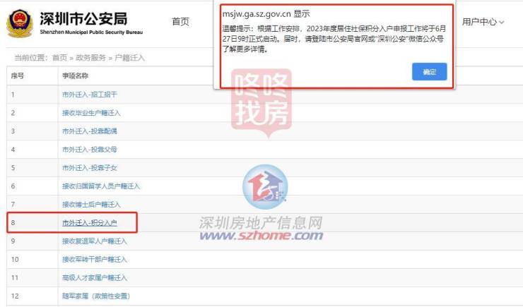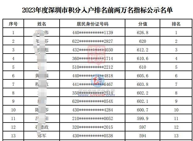 12月12日,2023年度深圳市积分入户排名前两万名指标名单公示,公示时间为2023年12月12日至2023年12月18日。