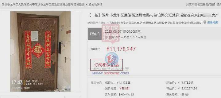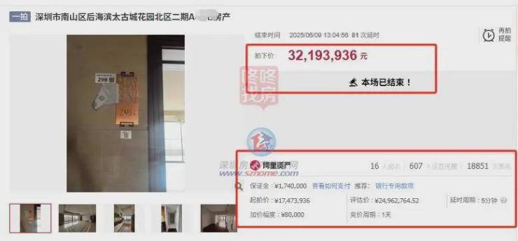 这个价格比去年9月同期法拍的太古城豪宅,涨了约750万。