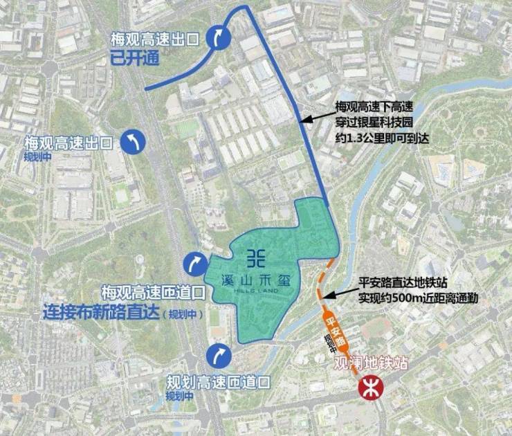 其中,梅观高速规划在项目西侧设置出入口连接布新路直达项目,未来业主出家门即可直接上高速。