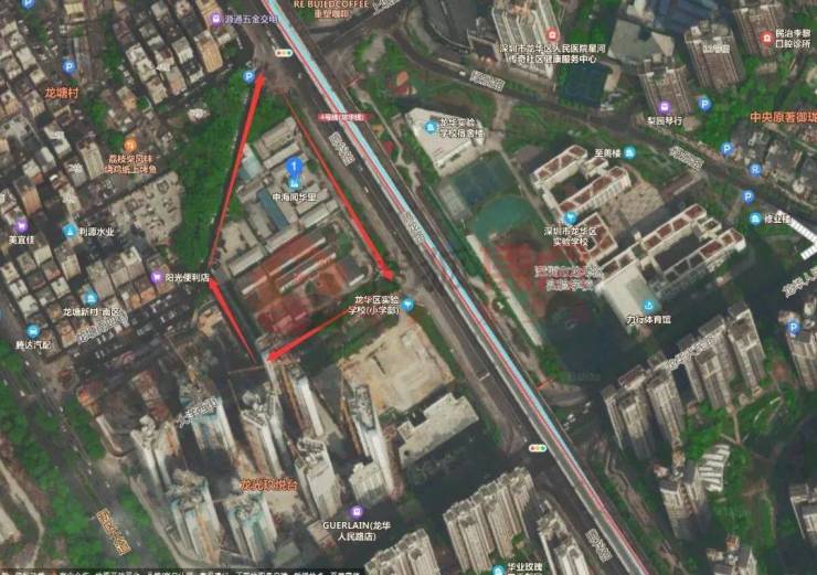 中海闻华里位于龙华腾龙路西侧、龙华区实验学校对面,项目南侧是龙光玖悦台和龙华区实验学校小学部,西北侧是龙塘村。