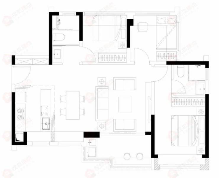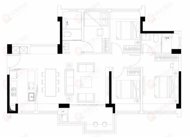 本户型是标准的3房2卫格局,主卫没有预留冲凉房的空间,故项目称之为1.9卫。户型图上没有尺寸标注,需要感受空间感的购房者可以预约看样板。户型的惊喜之处还在于入户出预留鞋柜和冰箱位的细节。