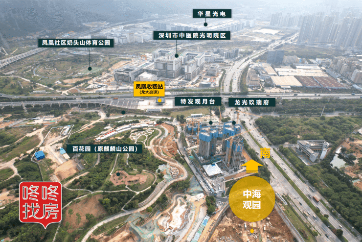 中海观园位于光明凤凰城片区龙大高速和光侨路处,邻近高铁光明城站,以及龙光玖瑞府小区。