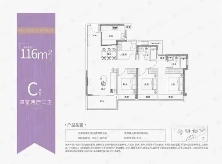 户型方面,项目有82平3房2厅1卫、93平3房2厅2卫、116平4房2厅2卫,