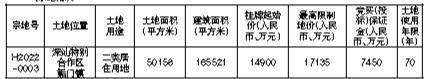 位于宝安新安街道,土地面积5425.03平方米,建面32538平方米,挂牌起始价52200万元;