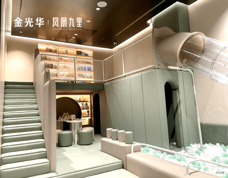 活动空间旁还打造了一个儿童玩乐区,透明滑滑梯连接海洋球池,mini小迷宫,阅读累了,就顺着滑梯滑下,让思绪在这份柔软中翻滚;也可以和小伙伴捉迷藏,童趣无限。