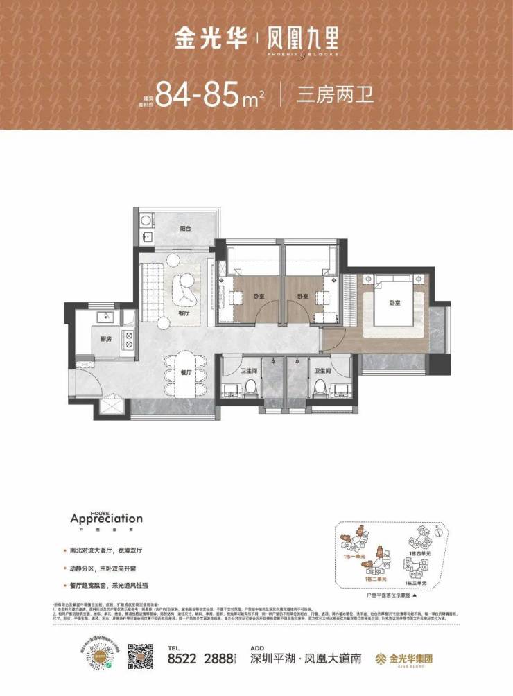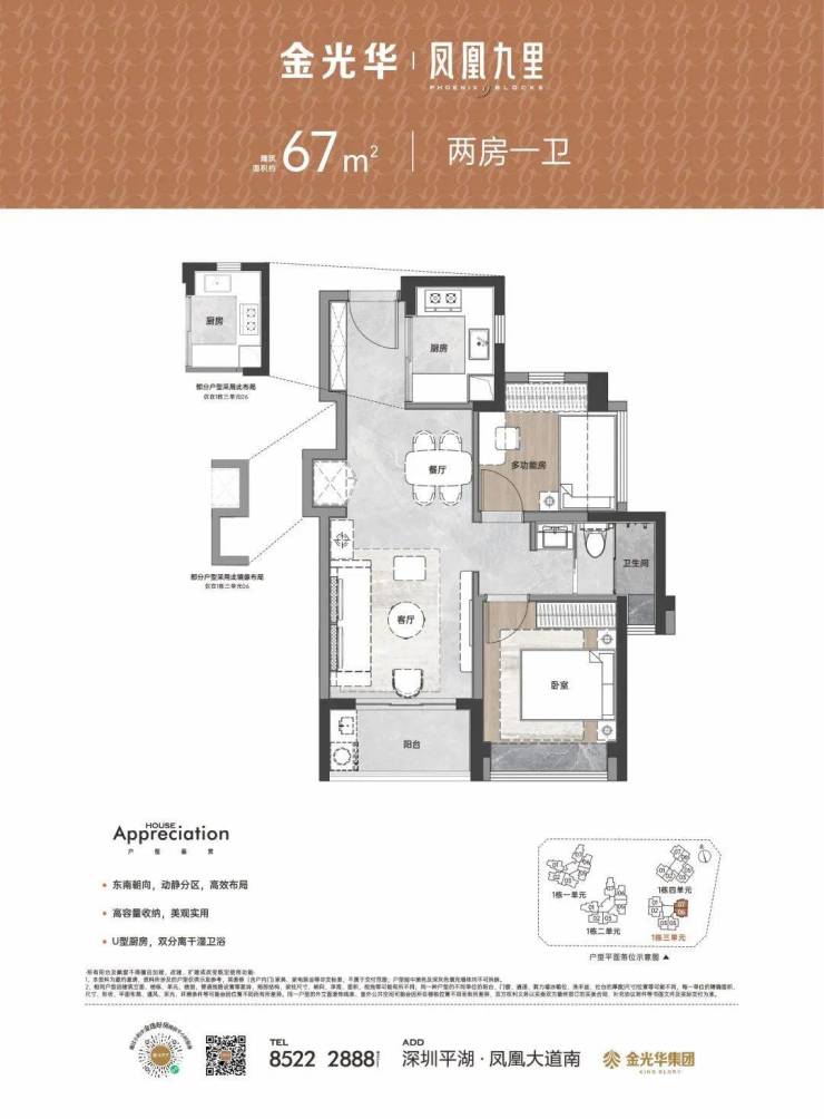 凤凰九里的臻装美宅样板间, 户型方正,科学布局,动静分离,U型厨房、S型墙体,大面宽、同等面积多一房······ 随处可见金光华对高品质空间的美学涵养与品位。 项目从空间的实用性出发,强化高容量收纳设计, 从玄关、厨房到卧室、卫生间,全方位优化收纳功能。同时,全屋精装,甄选高仪、西门子、 方太、飞利浦等一线品牌,保障优质人居之享,也让房子陪下一代更久。