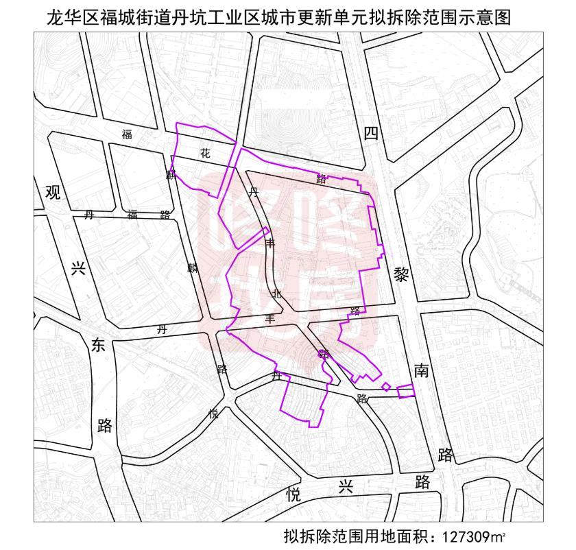 ②拟拆除范围内应落实用于城市基础设施、公共服务设施、政府公益性项目不少于58530平方米(含不少于20400平方米义务教育用地)。打通拆除范围内规划福花路、丹丰路以及悦丹路。