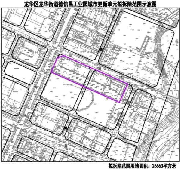项目位于龙华区龙华街道清湖路与华平路交汇处,拆除范围用地面积约2.7万㎡,拟更新方向为普通工业功能。