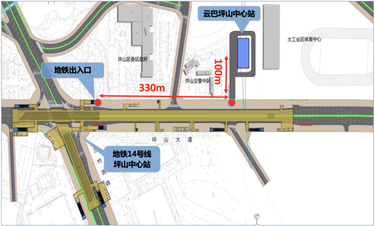 ● 坪山中心站:可与14号线坪山中心站实现换乘。