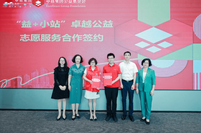 在与会人员的共同见证下,卓越公益志愿者服务队正式成立,黄睿书记为卓越公益志愿者服务队授牌授旗,与会领导共同为服务队剪彩,全体卓越志愿者代表们郑重宣誓。仪式中,卓越集团公益基金会与德义爱心促进会签署“益+小站”卓越公益志愿服务合作协议。