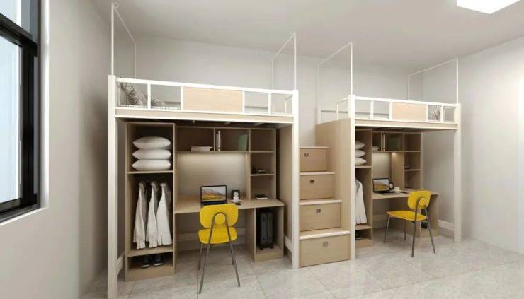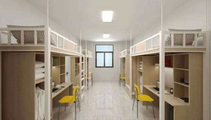 园林式生活空间。缤纷花树绕楼台,葱茏绿意映院落。星级标准四人间,上床下桌,木梯上下,衣柜、行李箱、鞋柜,就寝与学习空间相对独立。两卫两浴带阳台,敞亮舒适,起居便利;六部电梯配套六间步梯与六楼的空中休闲大街通连,出行通达。四个特色区块分别配置生活休闲、健身、阅读等设施,六间洗衣房、烘干机房、吹风机房配套设置,生活惬意。