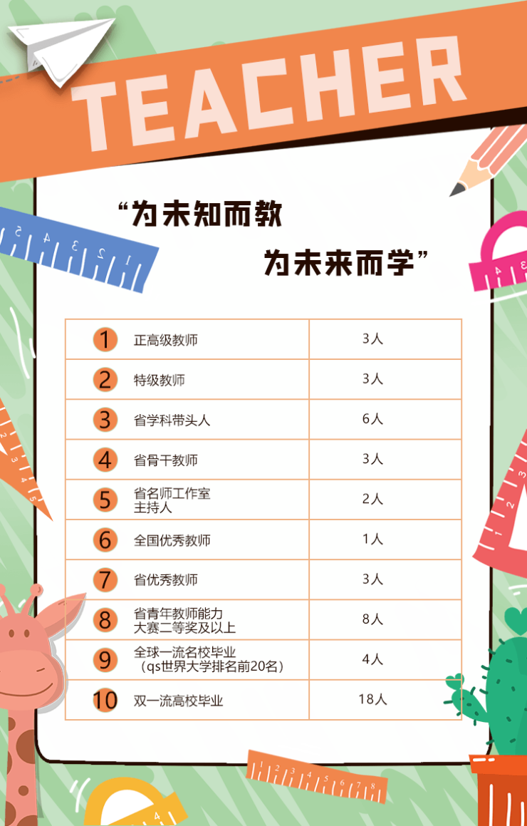 本着“发展为本,质量为重,教师为要”的原则,在宝安排名前列外国语学校党委的领导下,福海中学自2021年7月便开始精心组建与锤炼名师团队: